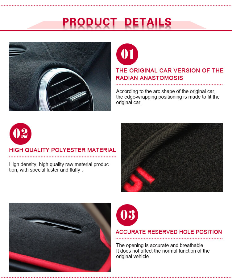 製品詳細: この製品はポリエステル繊維素材でできており、優れた滑り止め防水耐摩耗効果があり、洗濯可能で、繰り返し使用できます。優れた日焼け止めにより、車のダッシュボードを太陽から効果的に保護できます。