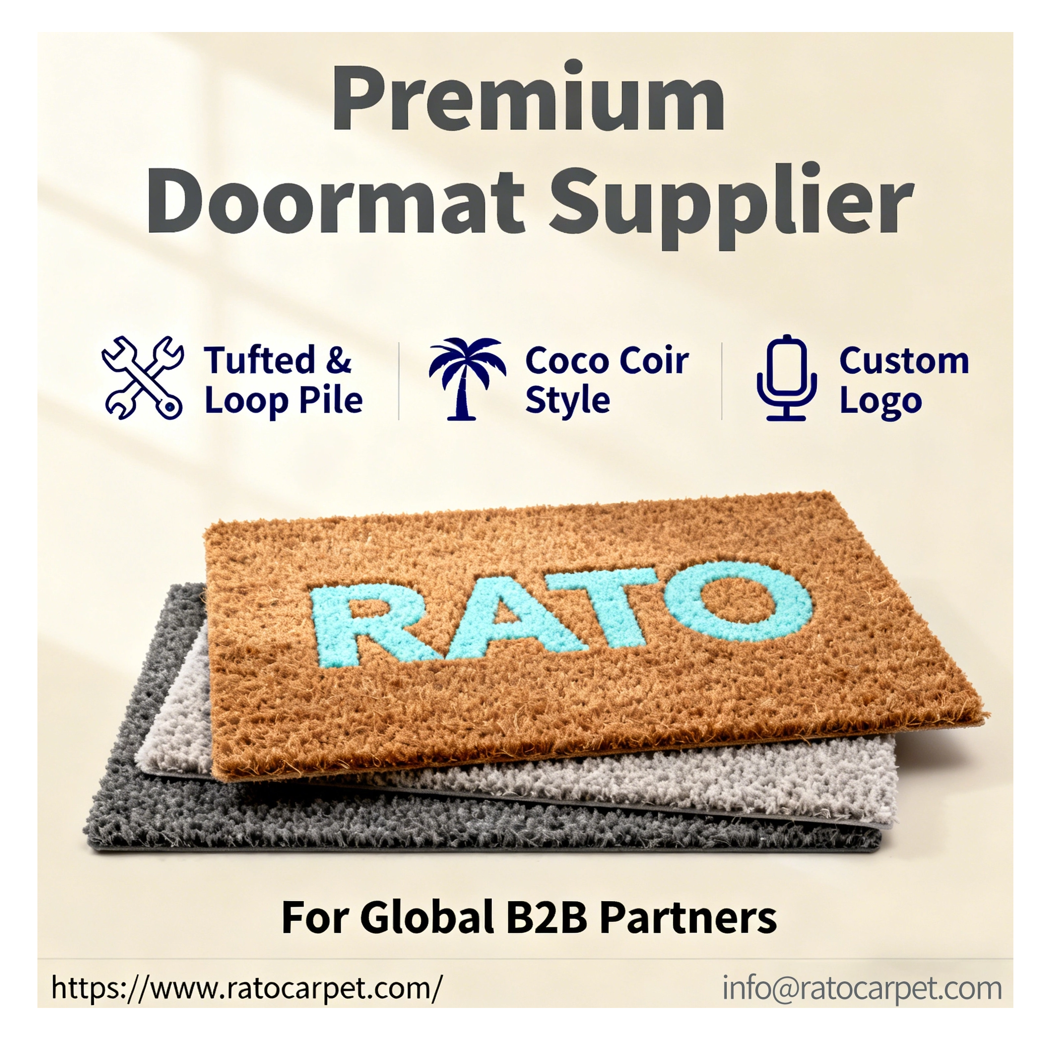 商業空間でも住宅空間でも、ドアマットは安全、衛生、イメージを守る最前線として機能します。対外貿易に特化した経験豊富なB2Bドアマットメーカーとして、当社はさまざまな用途にわたる世界中の顧客の多様なニーズを満たすために、幅広い高性能ドアマットの設計、製造、供給に注力しています。高度な生産技術、厳格な品質管理、強力なカスタマイズ能力を活用して、当社は海外のバイヤーにとって信頼できるパートナーとなっています。